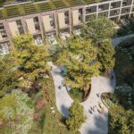 - De binnentuin is een echte biotoop die in samenwerking met de stadsecoloog en de Mecanoo voor de landschapsarchitectuur is ontworpen. Inheemse planten zijn zorgvuldig uitgekozen om privacy te bieden aan bewoners en ontspanning voor passanten. Er komt een parkeergarage die is geïntegreerd in de binnentuin. Bomen groeien letterlijk vanuit de parkeergarage de lucht in. Via een prachtig ontworpen toegang loopt je zo naar de groene binnentuin.