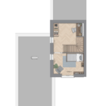 - Op de eerste verdieping: 1 slaapkamer en ruime bergruimte