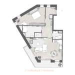 Hoekappartementen Op de hoek van de 2e en 3e verdieping komen extra ruime appartementen van 54 en 78 m² met prachtige raampartijen en schuifpuien in de voor- en zijgevel. Bijzonder is ook het balkon dat de hoek om loopt waardoor je meer zitruimte hebt en langer van de zon geniet. Je kunt de verdieping met de lift bereiken, maar als je de trap neemt bij de entree aan de achterzijde sta je heel snel bij je voordeur. Bij deze appartementen hoort zowel een privé berging als ook een privé parkeerplaats op het parkeerterrein achter het gebouw. De slaapkamer heeft een…