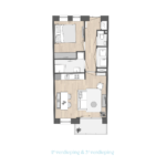 Bij dit type appartement is het toilet gescheiden van de badkamer. Wel zo fijn als je visite hebt. En de slaapkamer heeft een handige nis waar precies een grote kastenwand in kan. Je wasmachine kun je kwijt in de badkamer. Voor alles een plek! Is dit waar jij naar zocht?