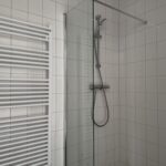 De badkamer is volledig betegeld en beschikt over een inloopdouche, wastafel met spiegel en een handdoekradiator. Het aparte toilet is zwevend en voorzien van een fontein, en is half betegeld. Het appartement is goed onderhouden, waardoor je zorgeloos kunt intrekken en meteen kunt genieten van al het comfort dat het te bieden heeft.