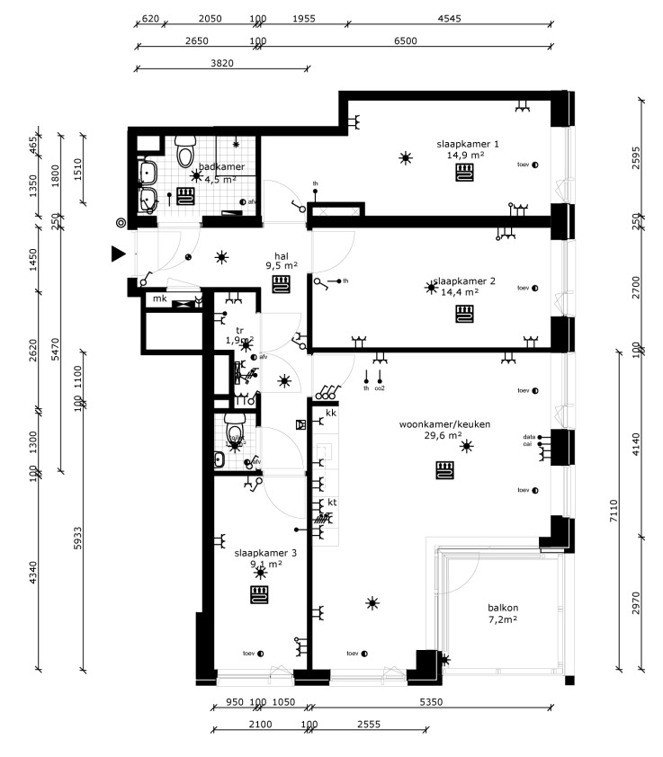Bij binnenkomst kom je in de centrale hal die toegang geeft tot alle vertrekken. De bijzonder ruime woonkamer met grote raampartijen vormt samen met de moderne open keuken een sfeervolle leefruimte. De keuken is uitgerust met diverse inbouwapparatuur zoals een inductiekookplaat, afzuigkap, combimagnetron, vaatwasser en koel-vriescombinatie. Vanuit de woonkamer stap je op het balkon, gesitueerd op het zuidoosten, waar je kunt genieten van de zon en het indrukwekkende uitzicht. Het appartement beschikt over drie ruime slaapkamers. De badkamer is volledig betegeld en voorzien van een inloopdouche, dubbele wastafelmeubel + spiegelkast, zwevend tweede toilet en designradiator. Daarnaast is er een apart toilet met fontein. Een praktische ruimte voor de cv-installatie en wasmachineaansluiting is eveneens aanwezig, evenals een meterkast. Het geheel verkeert in uitstekende staat van onderhoud, waardoor je er direct zorgeloos kunt intrekken.