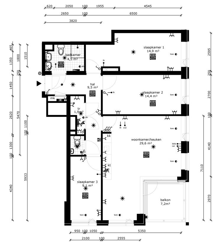 Bij binnenkomst kom je in de centrale hal die toegang geeft tot alle vertrekken. De bijzonder ruime woonkamer met grote raampartijen vormt samen met de moderne open keuken een sfeervolle leefruimte. De keuken is uitgerust met diverse inbouwapparatuur zoals een inductiekookplaat, afzuigkap, combimagnetron, vaatwasser en koel-vriescombinatie. Vanuit de woonkamer stap je op het balkon, gesitueerd op het zuidoosten, waar je kunt genieten van de zon en het indrukwekkende uitzicht. Het appartement beschikt over drie ruime slaapkamers. De badkamer is volledig betegeld en voorzien van een inloopdouche, dubbele wastafelmeubel + spiegelkast, zwevend tweede toilet en designradiator. Daarnaast is er een apart toilet met fontein. Een praktische ruimte voor de cv-installatie en wasmachineaansluiting is eveneens aanwezig, evenals een meterkast. Het geheel verkeert in uitstekende staat van onderhoud, waardoor je er direct zorgeloos kunt intrekken.