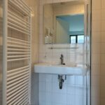 De slaapkamer is via een schuifdeur vanuit de woonkamer bereikbaar en biedt voldoende ruimte voor een tweepersoonsbed en kastruimte. De aangrenzende badkamer is modern afgewerkt en volledig betegeld. Deze beschikt over een inloopdouche, wastafel met spiegel en een handdoekradiator. Het toilet is separaat, bereikbaar vanuit de hal, deels betegeld en voorzien van een fonteintje. Daarnaast vind je in de hal de meterkast en een praktische berg-/stookruimte met wasmachineaansluiting en extra bergruimte.