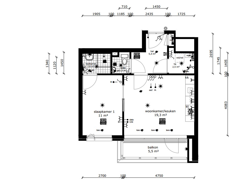 - Comfortabele vloerverwarming en -koeling in het gehele appartement (WKO).
