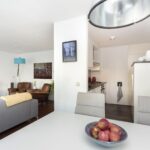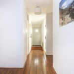 Via de galerij kom je de woning binnen in de lichte hal. Deze is voorzien van een wasruimte, een modern toilet met fontein, ruimte voor een garderobe, de meterkast en afgewerkt met lichte wanden en een warme houten vloer die tot in de woonkamer strekt. Je krijgt toegang tot alle woonvertrekken.