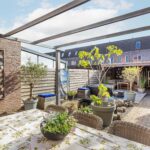 De diepe, zonnige achtertuin (zuidoost) is een echt pluspunt van deze woning. De tuin is fraai aangelegd en voorzien van een sfeervolle veranda en een overkapping, ideaal voor lange zomeravonden of om het hele jaar door beschut buiten te zitten. Achterin vind je een ruime schuur en een handige achterom.
