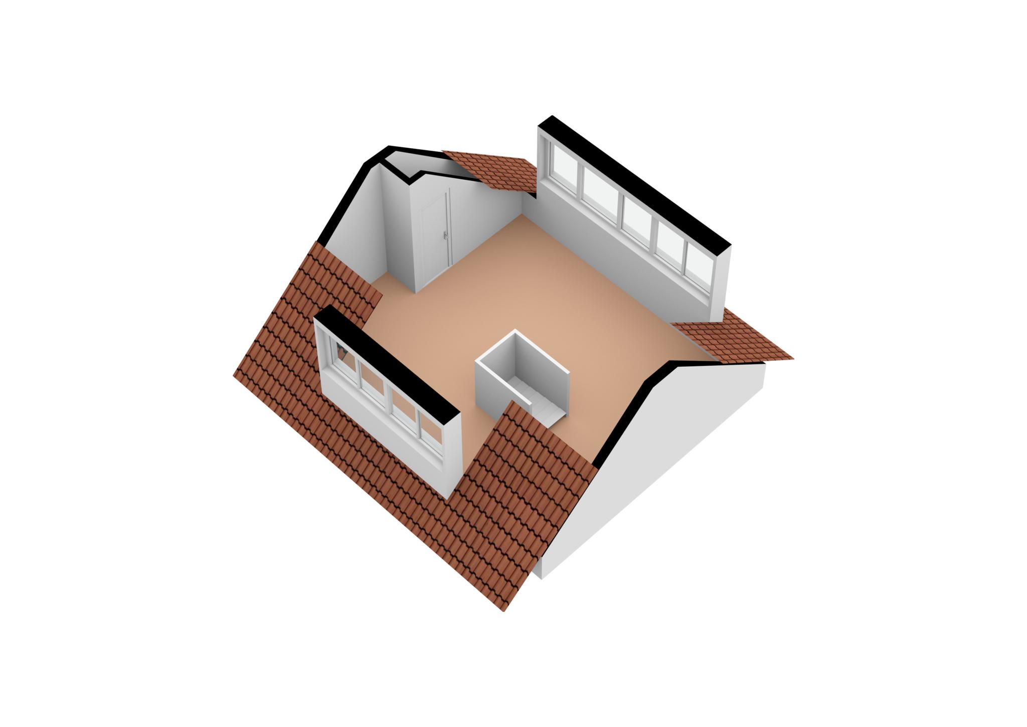 Tweede verdieping: via een afgesloten vaste trap bereik je de ruime en prettig lichte zolderverdieping met aan weerszijden dakkapellen. De cv- ketel is weggewerkt en er is de nodige opbergruimte achter de knieschotten.