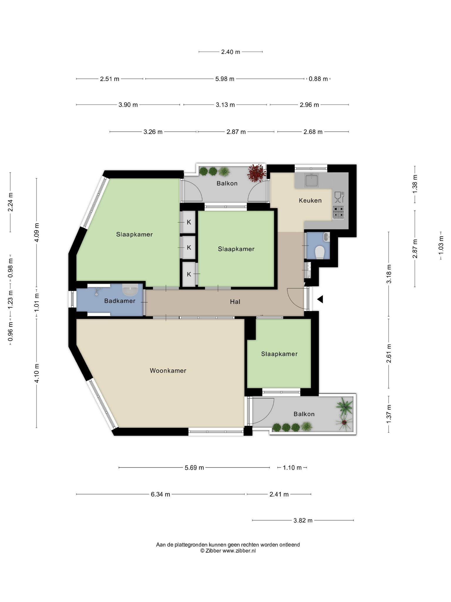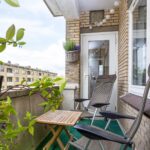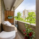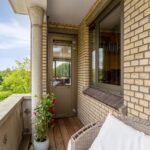 Een van de twee balkons is afgewerkt met houten vloerdelen. Het andere is voorzien van een mat van kunstgras.