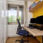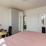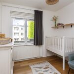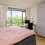 Ben je terug bij de voordeur? Dan gaat de eerste deur links en rechts van je naar twee slaapkamers. Deze lenen zich prima als slaapkamer, kinderkamer of thuiskantoor. De grootste slaapkamer ligt aan het einde van de hal aan je rechterhand. Deze slaapkamer is heel licht en sfeervol vanwege de grote raampartij en de prettige hoeveelheid daglicht die er naar binnen stroomt. Hier hoef je geen wekker te zetten in de zomer, want je wordt vanzelf wakker van de opkomende zon. Deze slaapkamer geeft ook toegang tot hetzelfde balkon dat vanuit de keuken bereikbaar is.