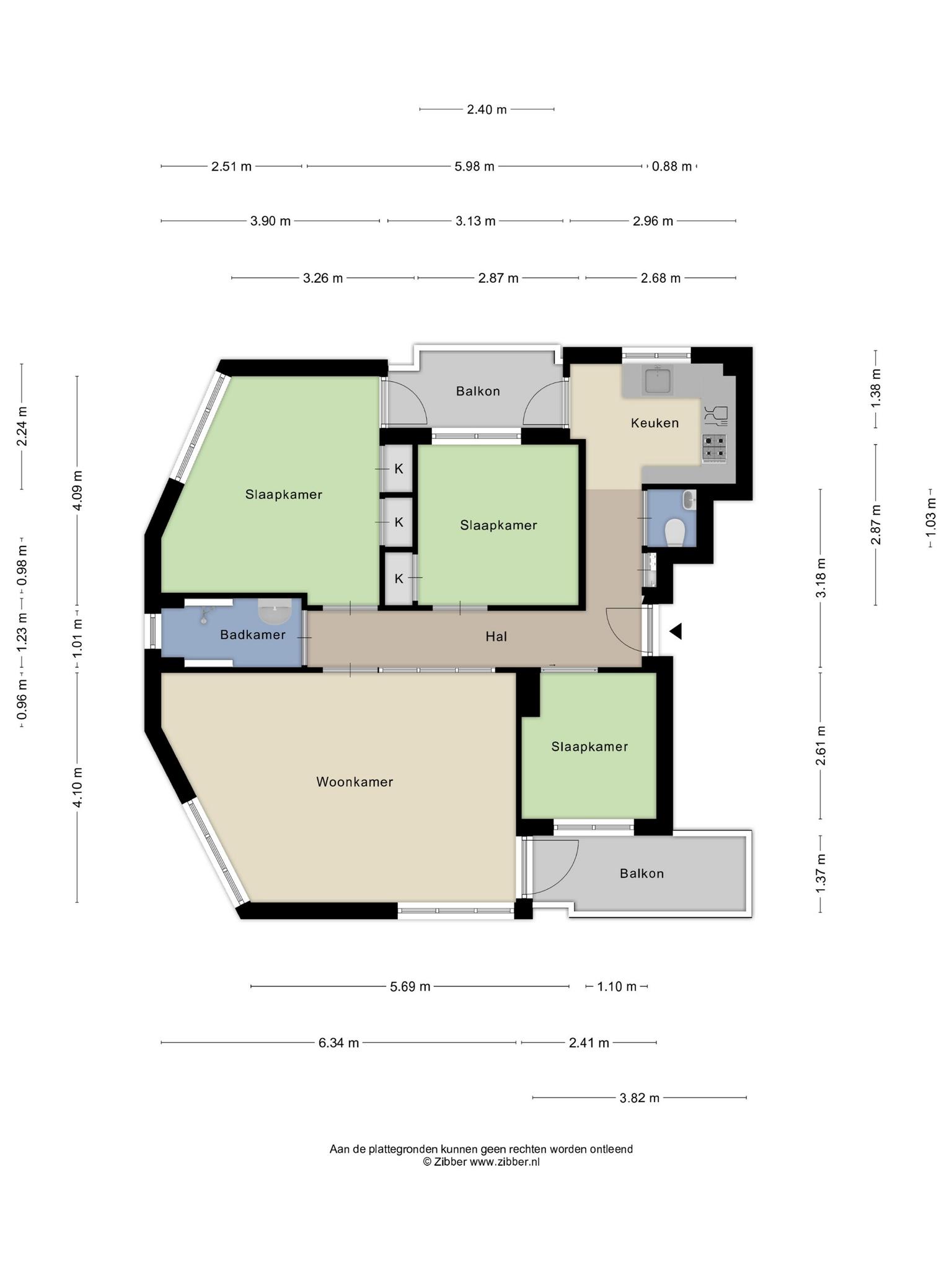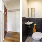 Voordat je je appartement binnenstapt heb je eerst nog de karakteristieke voordeur met het ronde raam. Dit geeft al aan wat voor sfeer er in dit appartement is. Eenmaal binnen kijk je rechtdoor een lange hal in en naar rechts heb je de meterkast, de toiletruimte en de keuken. Behalve in de sanitaire ruimten ligt er in heel het appartement een goedverzorgde hardhouten vloer.
