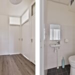De entree van het appartement is ruim en voorzien van een laminaatvloer, die over de gehele verdieping is doorgetrokken. Je vindt hier het toilet met fonteintje, en krijgt toegang tot de woonkamer en beide slaapkamers.
