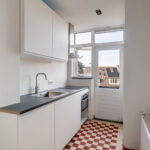 De nieuwe keuken (2025) is voorzien van moderne inbouwapparatuur zoals een inductiekookplaat, RVS afzuigkap, combi- oven en een vaatwasser. Vanuit de keuken is er toegang tot het tweede balkon aan de achterzijde.