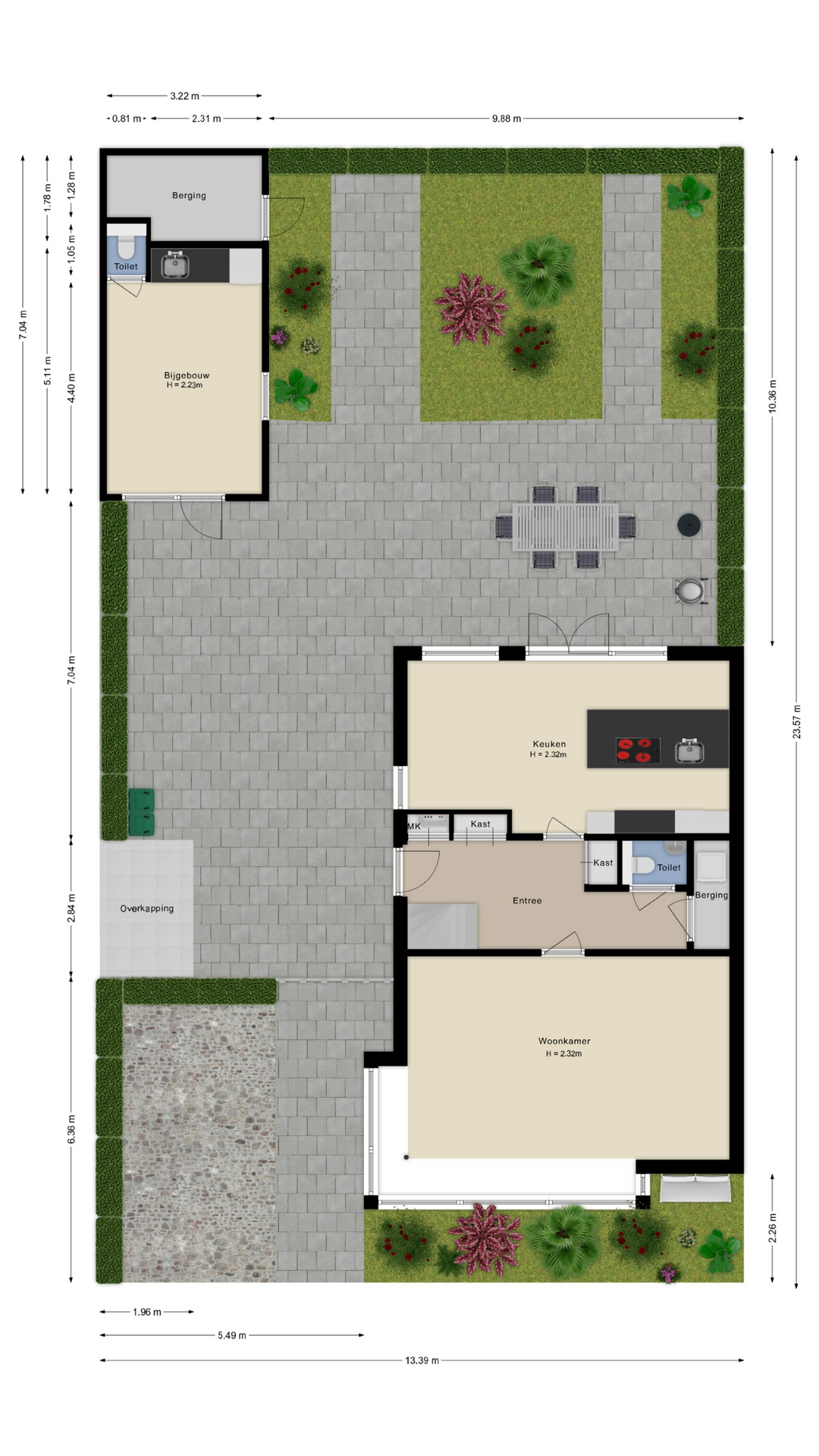- Ruimte voor twee parkeerplaatsen op eigen terrein en een elektrische laadpaal;
