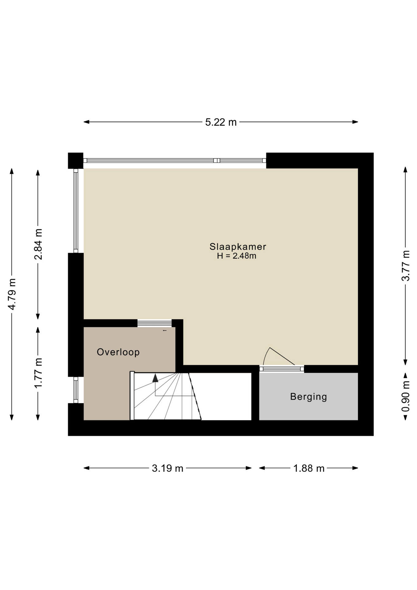 De vierde slaapkamer is gesitueerd op de zolderverdieping. Deze kamer is erg licht en ruim en beschikt over een grote inbouwkast.