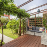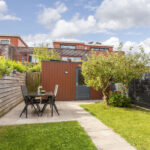 De zonnige, op het zuiden gelegen achtertuin is een genot om in te vertoeven. De tuin is vernieuwd en heeft een fraaie mix van groen en een mooie veranda met hardhouten vlonderterras. Dankzij de poort achterom en schuur met elektra en 2 zonnepanelen is de tuin ook zeer functioneel. Het extra dakterras op de dakopbouw biedt bovendien een prachtig uitzicht en is een fantastische plek met veel privacy.