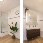 De overloop biedt toegang tot drie royale slaapkamers (20, 13 en 8 m2). De ruime badkamer is ingericht met een ligbad, een aparte douche, een dubbele wastafel met meubel en een spiegelkast met verlichting. Daarnaast is er op de eerste verdieping een separaat toilet en een handige wasruimte aanwezig.