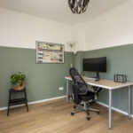 The fixed staircase leads to the second floor, where an extension in 2024 has created a full extra living floor. The three large rooms (15, 10, and 7 m²) can be used as offices, hobby rooms, or additional bedrooms, ideal for larger families. There is also the option to create an additional bathroom and toilet on this floor. This entire floor features sleek wood-look PVC flooring and smooth plastered walls and ceilings. Preparations are already in place should you wish to install solar panels on the roof extension (the roof structure has been adjusted, and electrical preparations have been made).