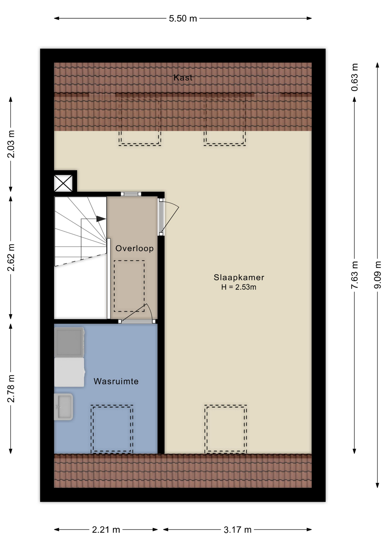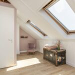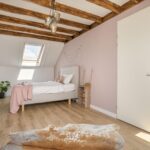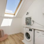 Overloop met toegang tot een royale 4e slaapkamer met grote dakramen (mogelijkheid om een 5de slaapkamer te creëren). Op deze verdieping vind je ook een aparte wasruimte met de benodigde aansluiting voor de wasmachine, droger, mechanische ventilatie en een wastafel met koud en warm water. De zolder is voorzien van een nette laminaatvloer. Aan bergruimte geen gebrek. In de 4e slaapkamer is er bergruimte achter de knieschotten en is er in de gang middels een vlizotrap de vliering bereikbaar. Daarnaast kan ook op deze woonlaag uitgebreid worden door één of twee dakkapellen te plaatsen.
