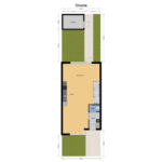 Op de begane grond is de keuken/eetkamer aan de voorzijde van de woning gesitueerd met uitzicht op de straat en het groen van het park. Aan de achterzijde ligt de tuingerichte woonkamer, waar grote raampartijen zorgen voor veel daglicht en een fijne verbinding met de zonnige tuin. De keuken is niet inbegrepen waardoor deze nog naar eigen wens kan worden ingericht.