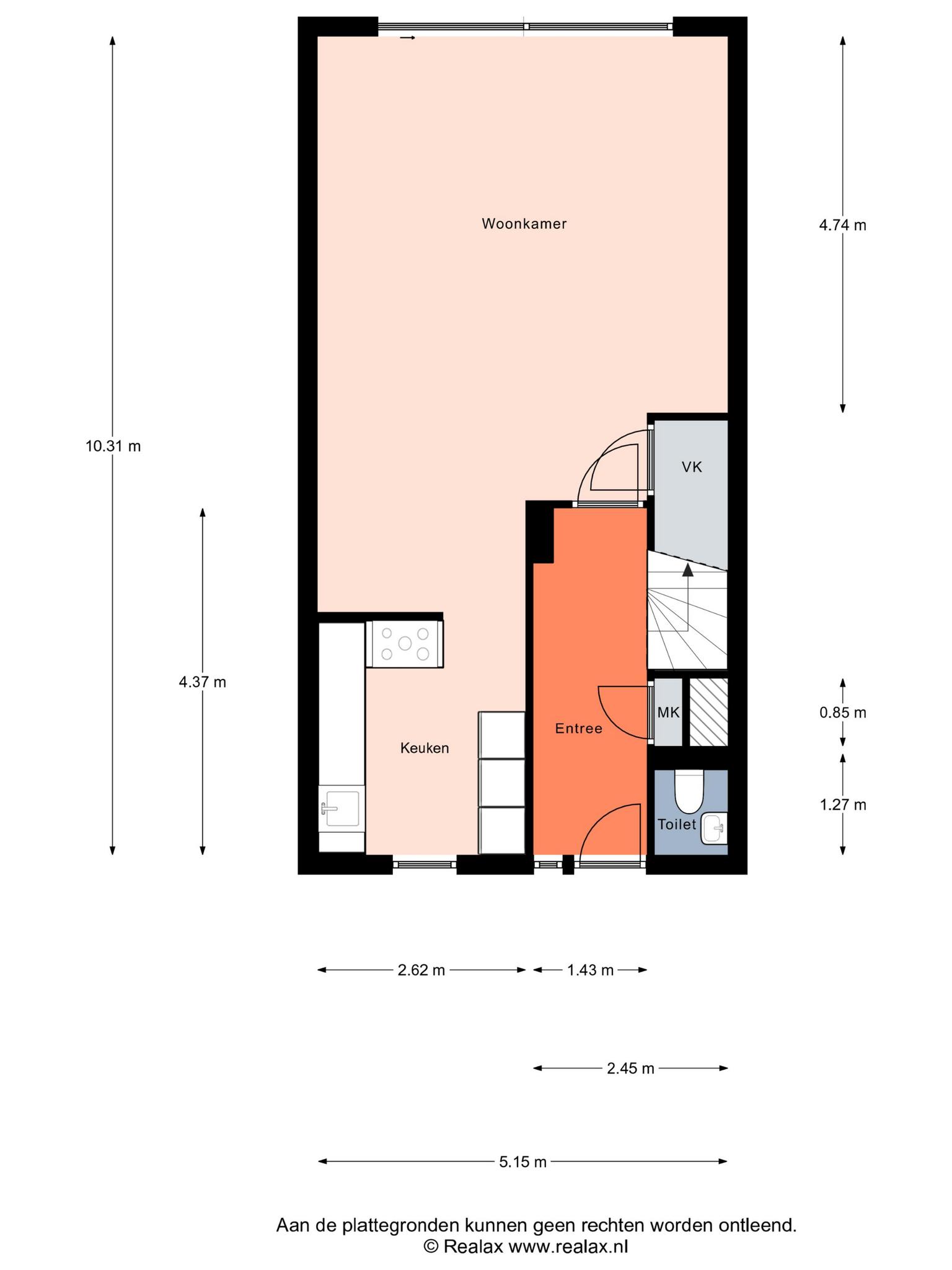 Entree, hal, meterkast, toilet en de trapopgang naar de 1e verdieping. Vanuit de hal kom je in de ruime woonkamer met trapkast en een glazen schuifpui die toegang biedt naar de tuin die gelegen is op het oosten. De tuin is voorzien van een achterom en een berging. De keuken is modern en voorzien van inbouwapparatuur zoals een keramische kookplaat, oven, vaatwasser en een koelkast en vriezer.