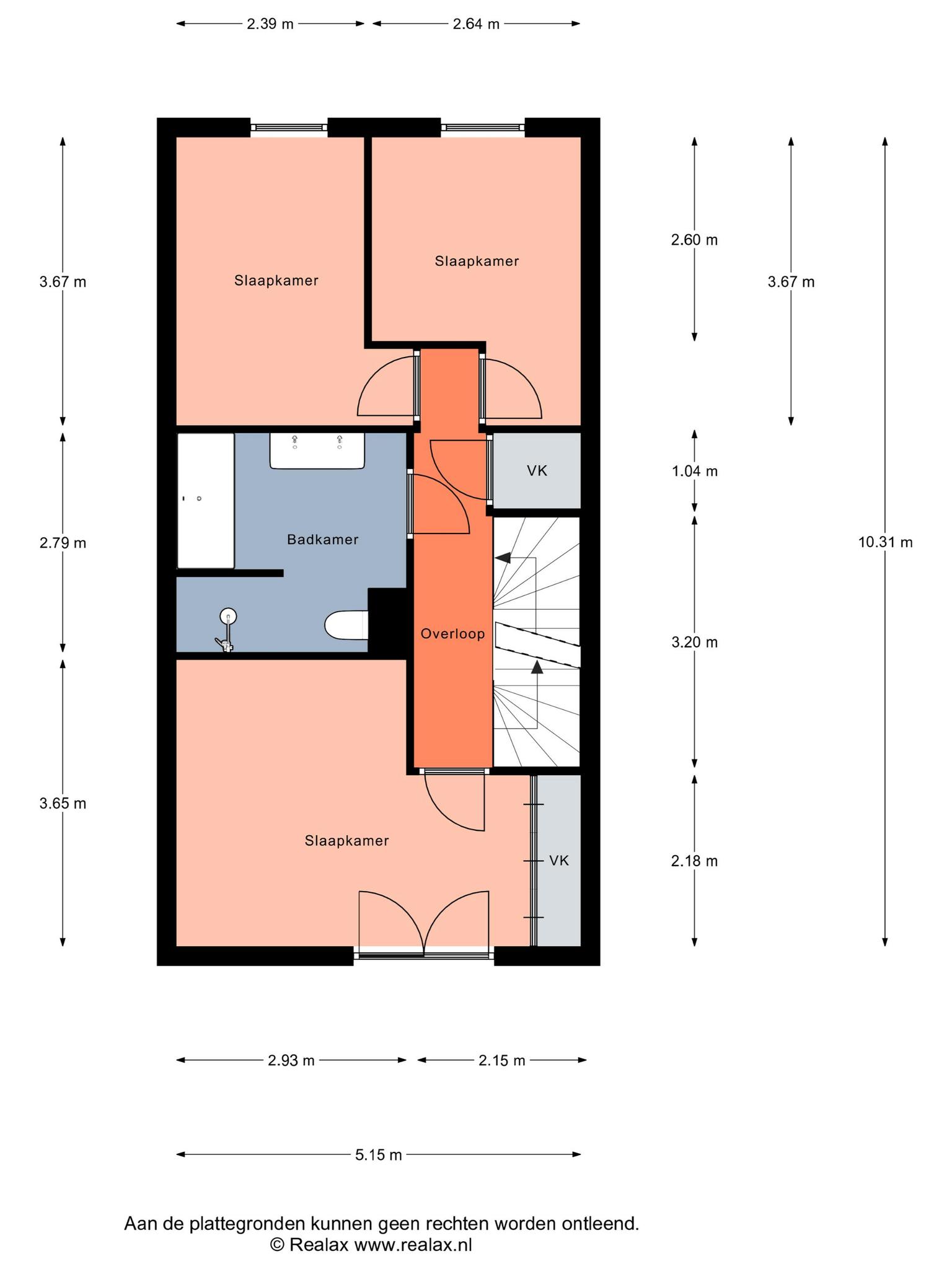 Voorzolder met de aansluiting voor de wasmachine, 2 slaapkamers.