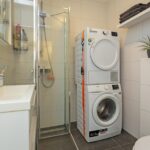 De moderne badkamer is in 2018 vernieuwd en voorzien van een hangend closet, douchehoek, wastafelmeubel met spiegelkast, designradiator en wasmachine aansluiting.
