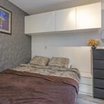 De slaapkamer ligt aan de voorzijde van de woning, is circa 8 m² groot, heeft een groot raam, ruime inbouwkast en een rolluik. De slaapkamer is voorzien van een laminaatvloer en behangwanden.