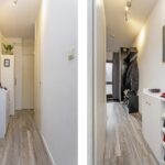 Entree, zeer ruime hal met toegang tot de vernieuwde meterkast (2018), stookruimte met CV ketel (Nefit, bouwjaar 2018) en mechanische ventilatie (2022), badkamer, slaapkamer en woonkamer. De hal is voorzien van een laminaatvloer.