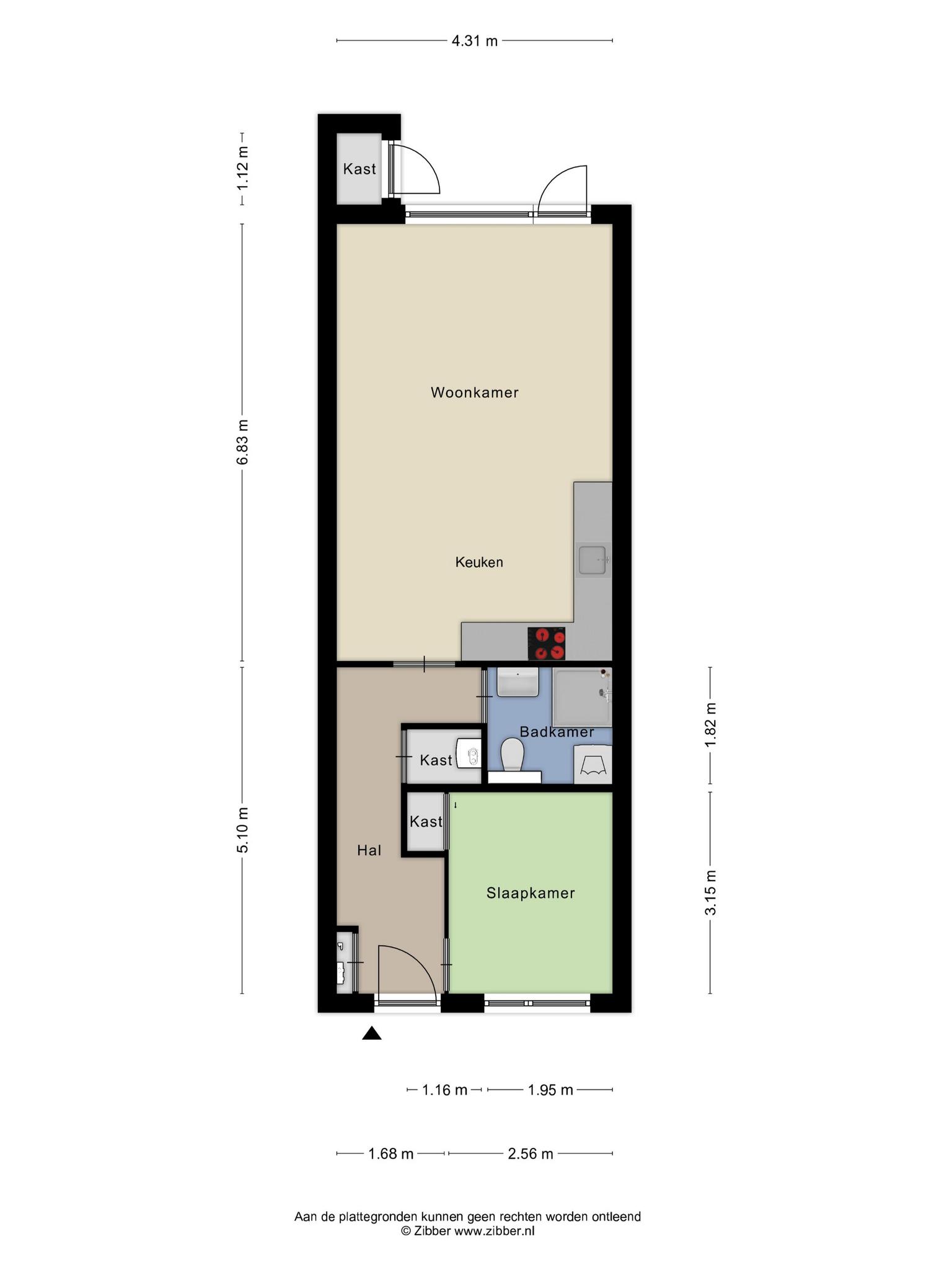 - Woonoppervlakte 56 m²;