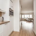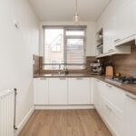 De modern afgewerkte keuken is aan de voorzijde van de woning gelegen en voorzien van een modern L-vormig keukenblok met koelkast, gaskookplaat, combimagnetron, valkscherm afzuigkap, vaatwasser en indirecte verlichting.