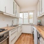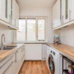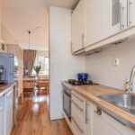 Vanuit de woonkamer is toegang tot de open keuken aan de voorzijde van de woning. De keuken is wit van kleur en voorzien van 4-pits gaskookplaat, afzuigkap, oven, koelkast en aansluitingen voor de wasmachine en droger.