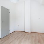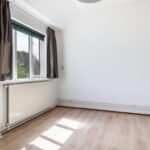 De slaapkamer ligt aan de voorzijde van de woning, is circa 12m² groot en heeft een groot raam.