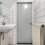 De standaard uitgevoerde badkamer is voorzien van een wastafel en douche. In de badkamer bevinden zich ook de witgoedaansluitingen.