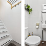 Entree, hal met vinylvloer en gestucte wanden, vernieuwde en uitgebreide meterkast, moderne toiletruimte met closet en fonteintje, trapopgang en toegang tot de woonkamer.