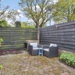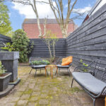 De heerlijk vrij gelegen achtertuin heeft een afmeting van circa 9 x 6 meter en is voorzien van stoere schuttingen en borders met vaste beplanting. De tuin, met middagzon, biedt veel privacy en beschikt over een toegangspoort aan de zijkant.