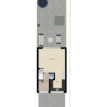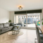 De lichte woonkamer is tuingericht, voorzien van vloerverwarming en een praktische bergkast onder de trap. Via de schuifpui stap je zo de zonnige achtertuin in.