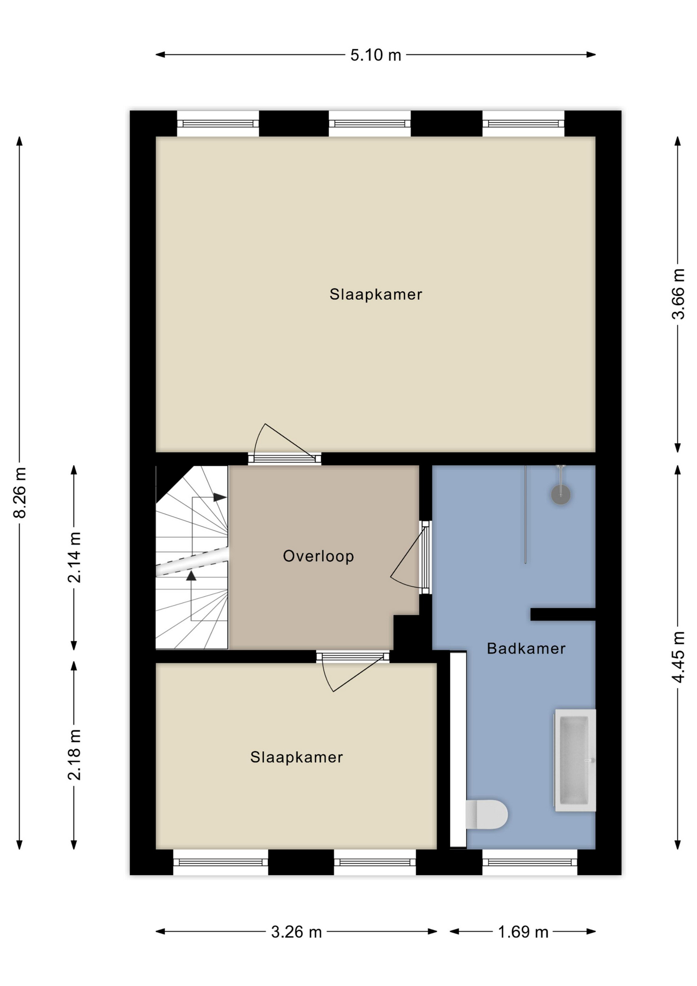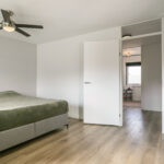 Aan de achterzijde ligt de grote ouderslaapkamer over de volle breedte, eventueel te splitsen in twee kamers. Aan de voorzijde bevindt zich de tweede slaapkamer. Ook op deze verdieping ligt vloerverwarming.