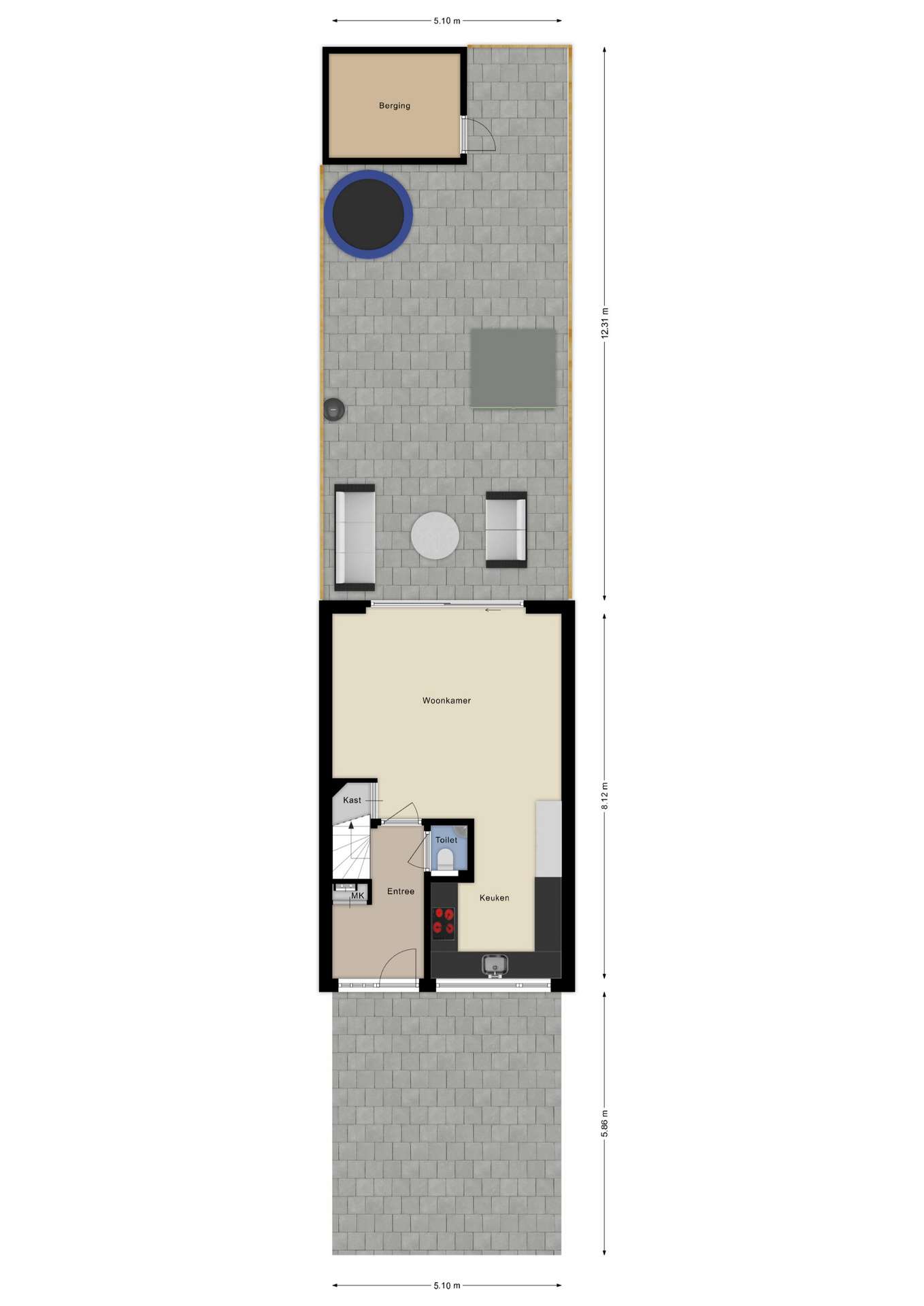 De achtertuin op het zuiden is in 2021 volledig vernieuwd en beschikt over een achterom en houten berging. Hier geniet je de hele dag van de zon!