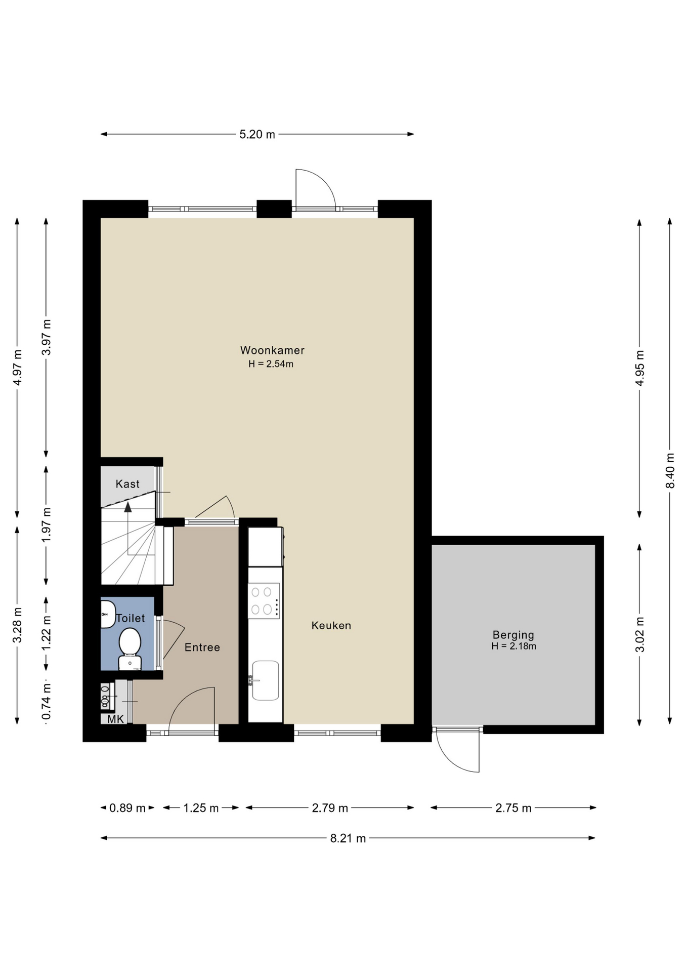 De hal/entree biedt toegang tot de ruime woonkamer, het toilet, de meterkast…