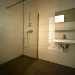 Binnenkomst in de hal met toegang tot de meterkast, de badkamer (met douche, toilet en wastafel) en een handige inpandige berging met warmtepomp, WTW-unit en aansluiting voor de wasmachine.