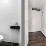 De hal heet je welkom en geeft direct een nette, verzorgde indruk. Hier vind je een nieuwe meterkast, een modern zwevend toilet met fontein en een praktische kast die ideaal is als extra bergruimte. In een tweede kast zijn de WTW-installatie, warmtepomp, de wasmachineopstelling en ruimte voor extra opslag keurig weggewerkt — praktisch en volledig uit het zicht.
