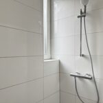 Badkamer: De nette badkamer beschikt over een douche, toilet, wastafel en een handdoekenradiator.