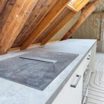 Keuken: De open keuken is verrassend ruim en modern ingericht. Voorzien van inbouwapparatuur zoals een inductiekookplaat met geïntegreerde afzuigkap, een combi magnetron, koelkast, vaatwasser en voldoende opbergruimte. Ook is er een aansluiting voor de wasmachine aanwezig.