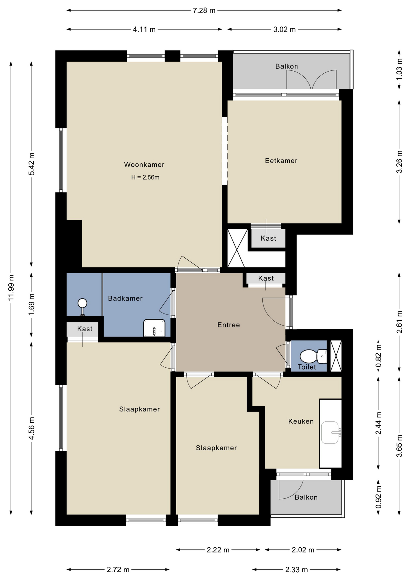 De woning heeft een ruime woonkamer met veel lichtinval, twee goede slaapkamers en twee balkons met mooi uitzicht!