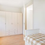 The upper floor offers two generous bedrooms, both featuring neat laminate flooring and large windows that allow for ample natural light. The spacious bedroom at the rear of the house is equipped with air conditioning, ensuring ultimate sleeping comfort.