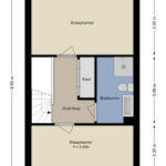 De overloop is voorzien van een grote bergkast met aansluitingen voor witgoed en ruimte voor de cv-ketel.