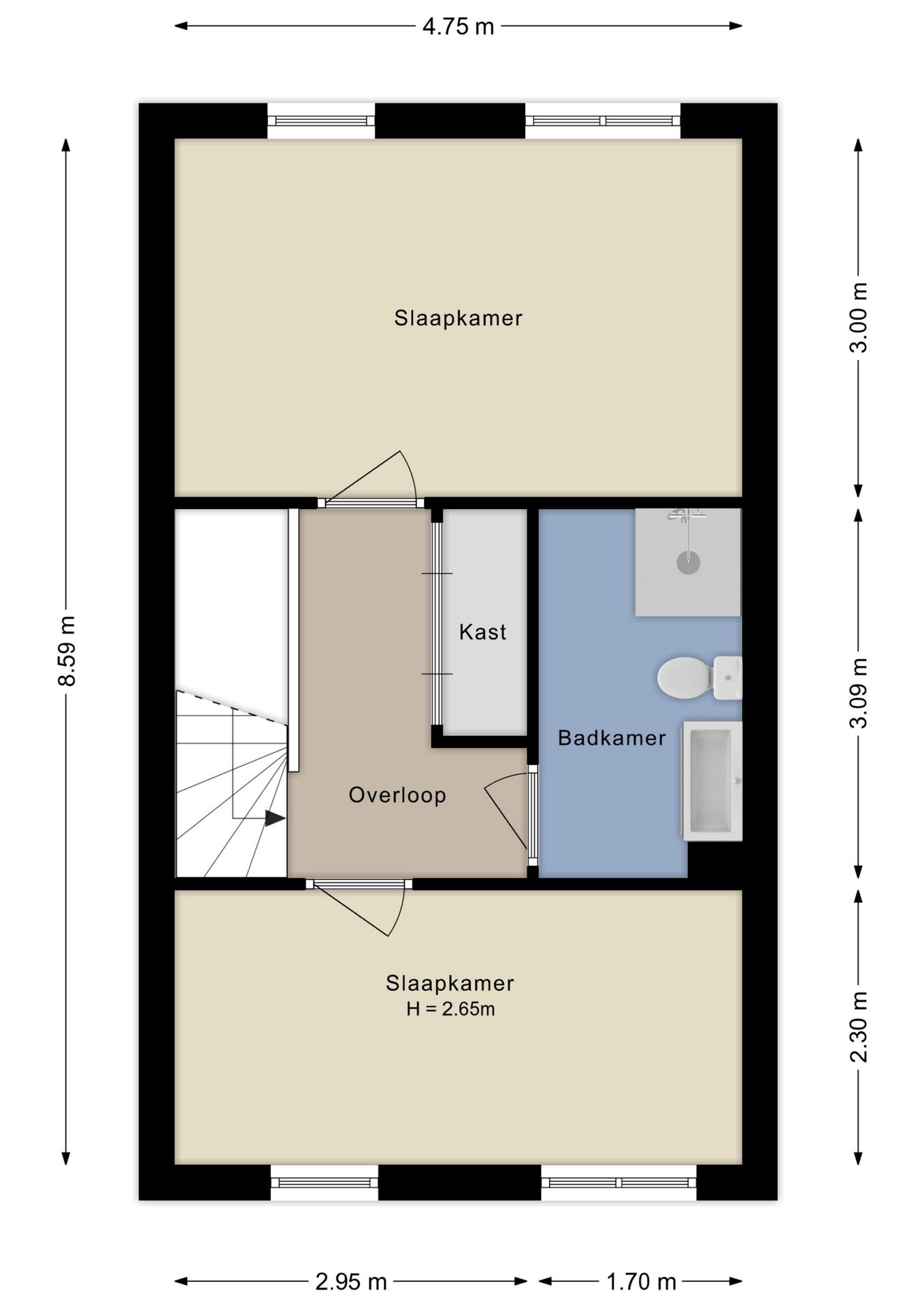Op de eerste verdieping vind je twee ruime slaapkamers met een mooie laminaatvloer. Beide kamers profiteren van een fijne lichtinval dankzij de dubbele raampartijen. De slaapkamer aan de achterzijde beschikt bovendien over airconditioning.