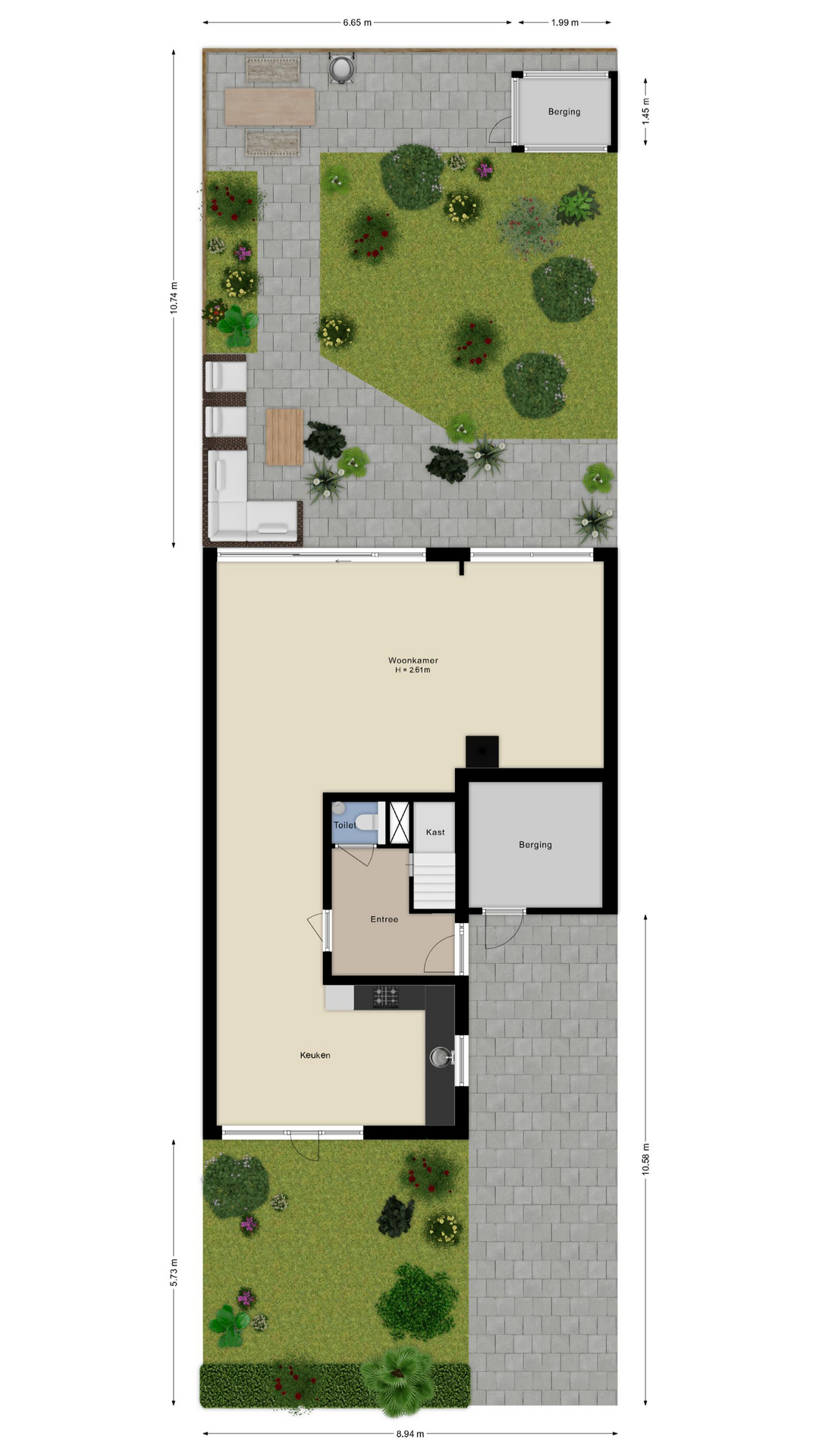 - Mogelijkheid om twee auto’s op eigen terrein te parkeren;