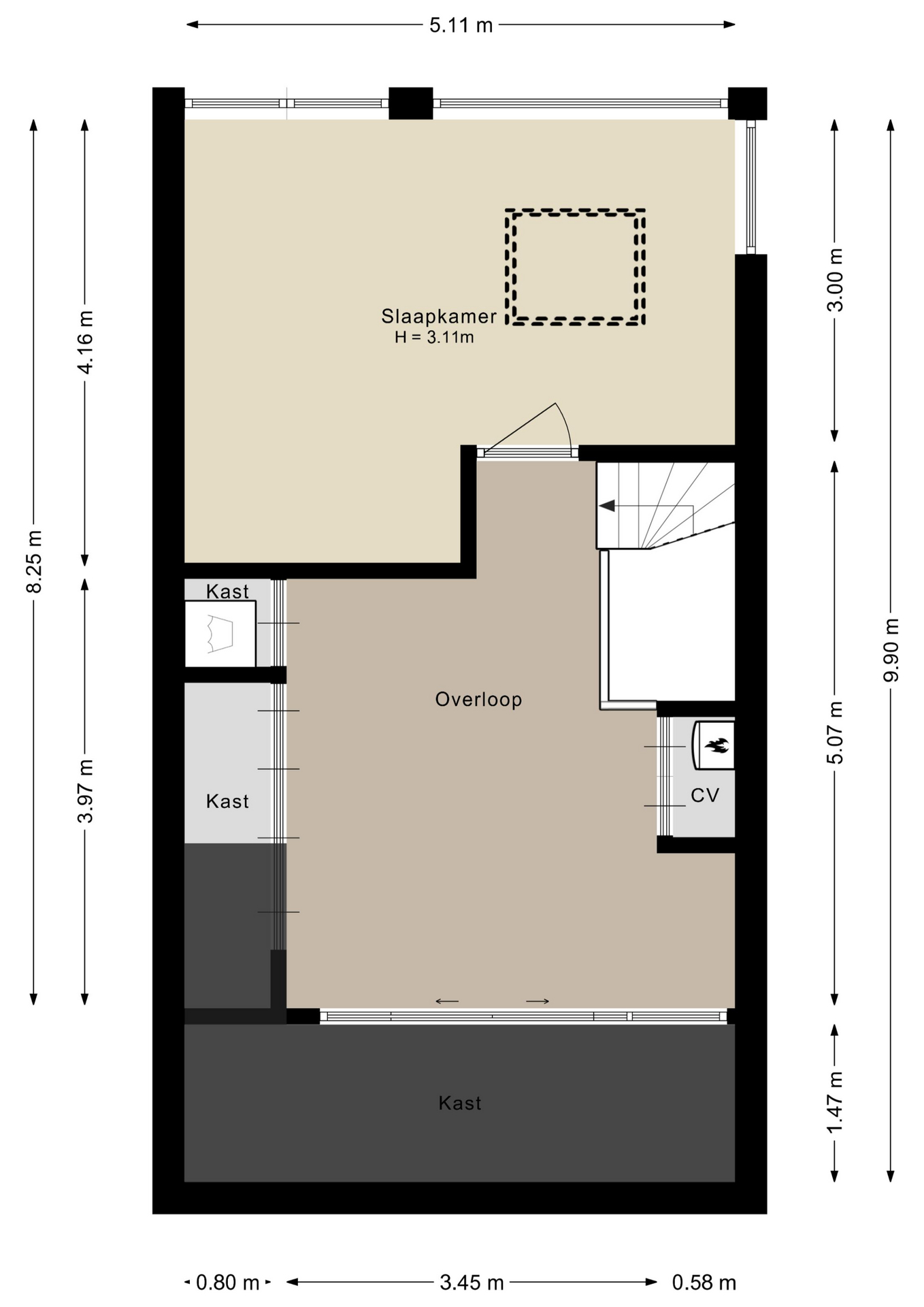 Op de voorzolder, waar de witgoedaansluitingen en cv netjes zijn weggewerkt in inbouwkasten, krijg je ook de mogelijkheid om een extra slaapkamer te creëren. Aan de achterzijde van de woning bevindt zich een ruime derde slaapkamer voorzien van een airco. Hier heb je een prachtig weids uitzicht op het achtergelegen groen. Bovendien bieden de knieschotten op deze verdieping extra bergruimte,